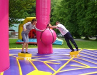 Règles: Faire tomber les adversaires de leur plot en leur faisant perdre l’équilibre à l'aide du ballon suspendu géant !
