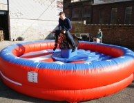 Règles: Faire tomber l’adversaire de la surface centrale à l’aide des gants de boxe géants,